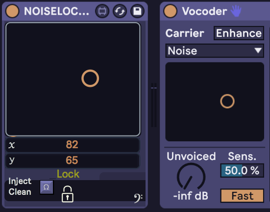 NOISELOCK VocoderXY 1.0.1 is the utility device that allows you to map the noise parameter of Ableton Vocoder (Basic), anywhere you prefer.