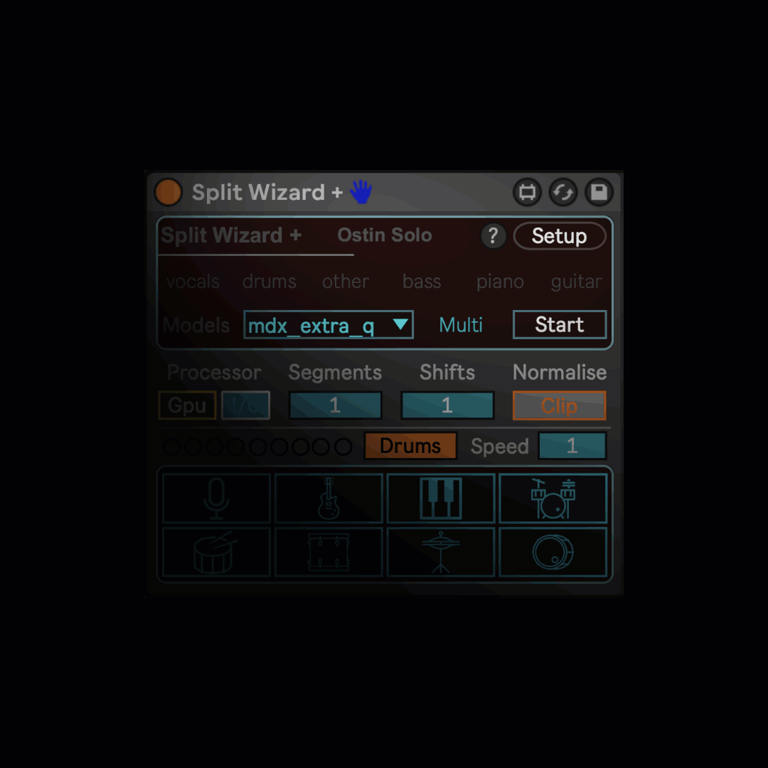 Split Wizard is an advanced audio separation tool designed for Ableton Live, leveraging the power of Demucs v4, a state-of-the-art source separation model. It efficiently deconstructs audio stems into up to six distinct elements, offering seven specialized models for precise audio separation. The device utilises Hybrid Transformer Demucs technology for superior separation quality, offering models that cater to various needs, including the separation of drums, bass, vocals, guitar, piano and drum kit elements.